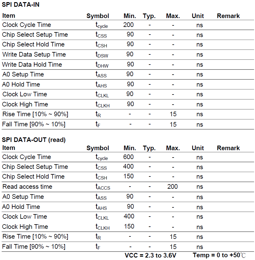 The maximum clock speed of the display is 20MHz (Write), 2.5MHz (Read).