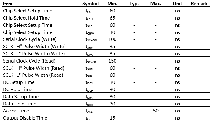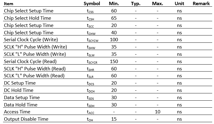 SPI commands are used to communicate between the host and the COG driver. The SPI format used differs from the standard in that two-way communications are not used.